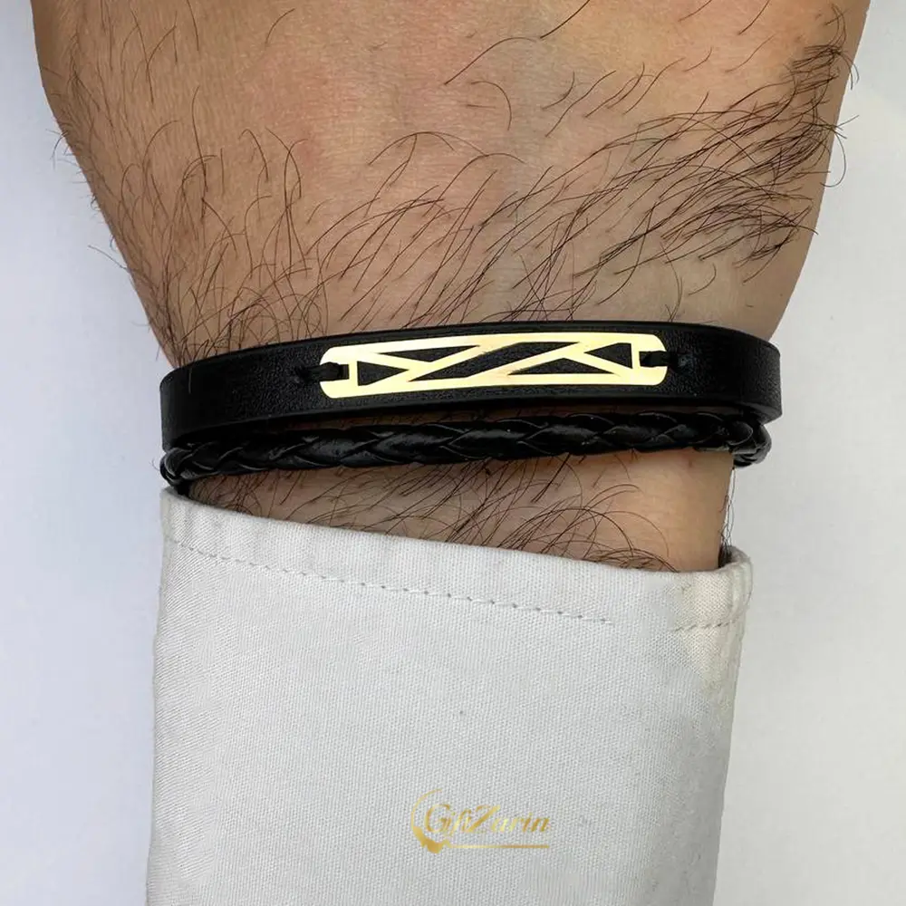 اگر به دنبال طرحی ساده تر هستید، دستبند چرم طلای مردانه با پلاک حروف اول نام یا اعداد خاص، انتخابی عالی است. این مدل برای جوانان فانتزی پسند مناسب بوده و می تواند نمادی از خاطرات شخصی باشد.