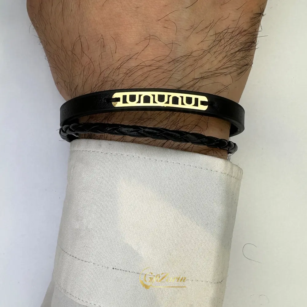 دستبند چرم و طلا مردانه حروف